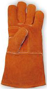 Cowhide Split Leather, Palm On Thumb& 1 Piece Back, Inside Full Lining. Available Sizes: 12",14",16"